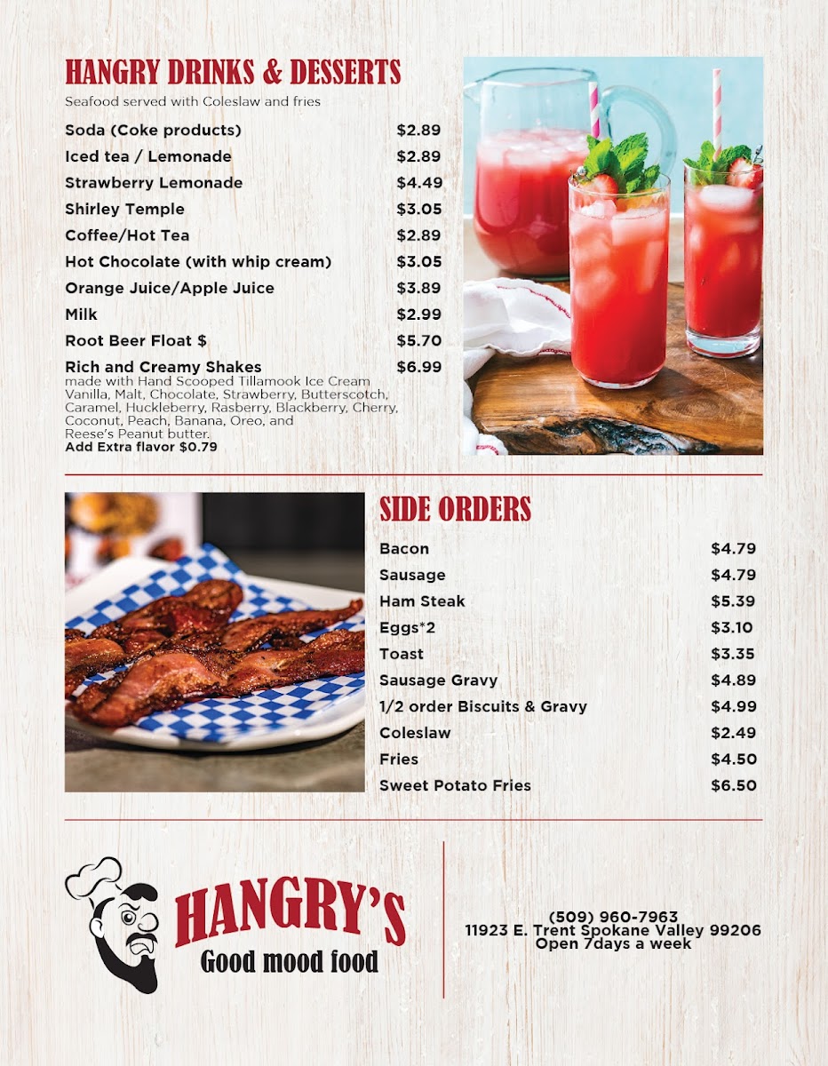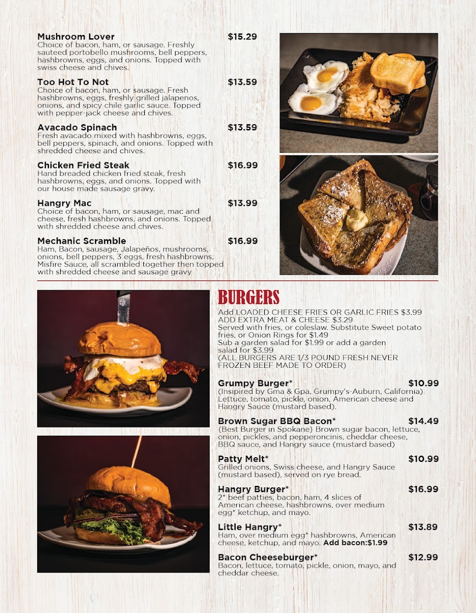 Welcome to Hangry's Spokane Valley, where comfort food meets culinary passion. Nestled at 11923 E Trent Ave, this delightful eatery specializes in mouthwatering burgers, made from 1/3 lb. of fresh, never-frozen beef, like the tantalizing Grumpy Burger, inspired by family traditions. Each burger is paired with your choice of sides, ensuring a satisfying experience.